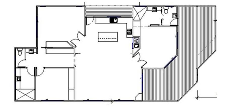 * Open plan living with raked ceilings